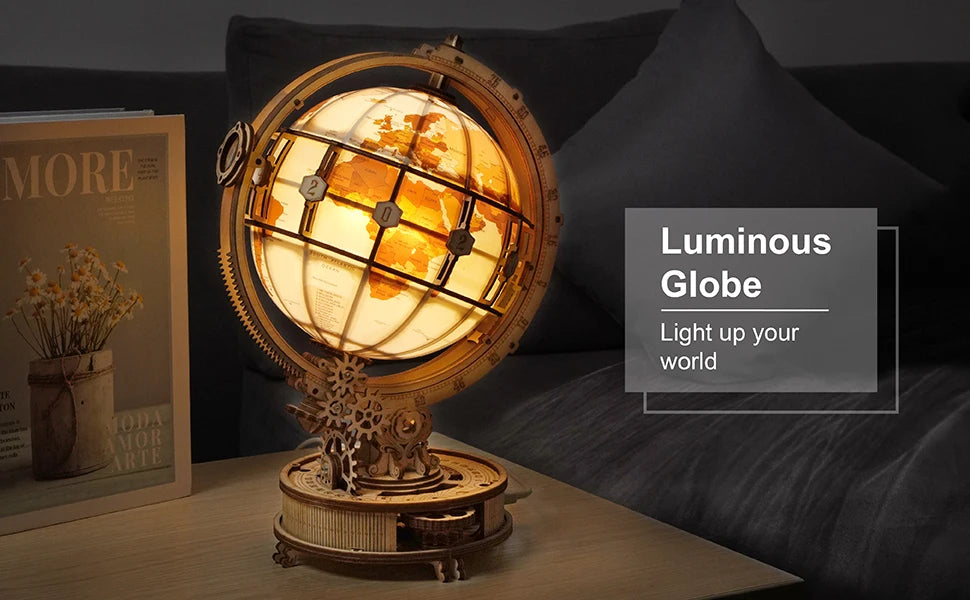 - **Stunning Luminous Globe Puzzle: Discover the perfect 3D wooden puzzle of the year with this captivating globe, featuring 180 intricately pre-cut wooden blocks. Equipped with a built-in LED light, it transforms into a stunning desk lamp when illuminated, allowing you to explore the world and admire its beauty even in the dark.